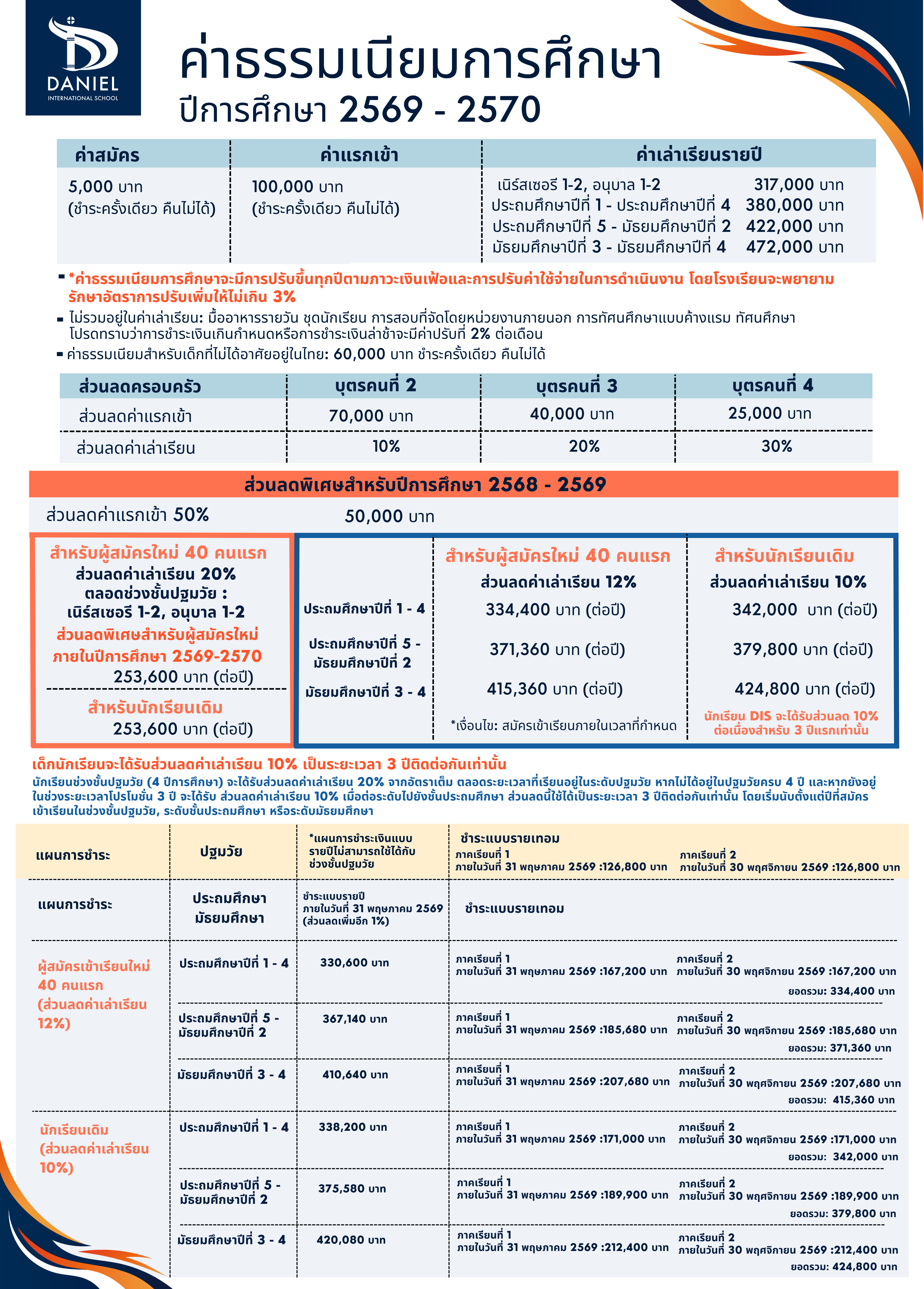 ค่าธรรมเนียมและค่าใช้จ่ายสำหรับปีการศึกษา 2568-2569 มีดังต่อไปนี้